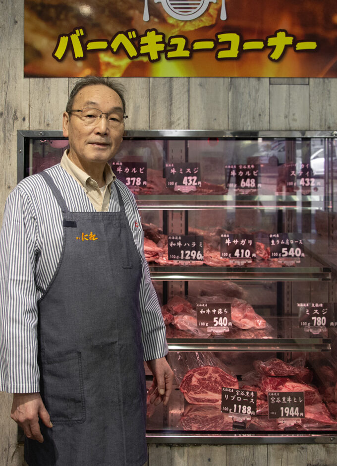 若い頃からこの道一筋。新店舗では若い家族にターゲットを絞りバーベキューコーナーを設置しました。