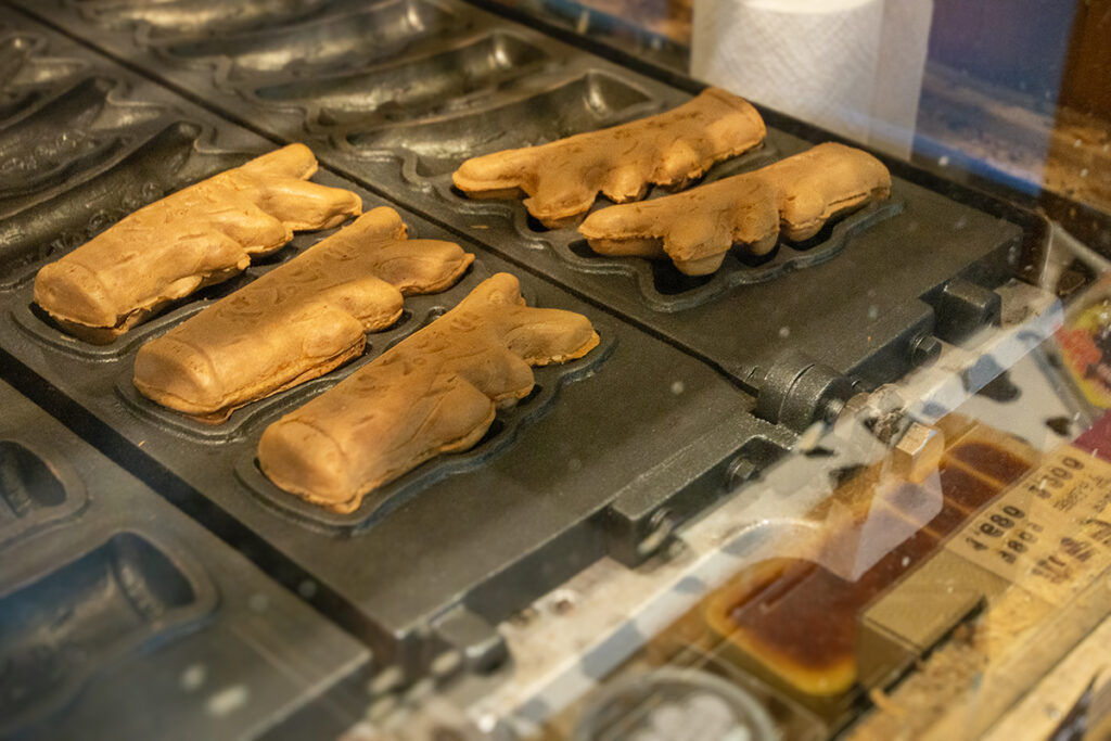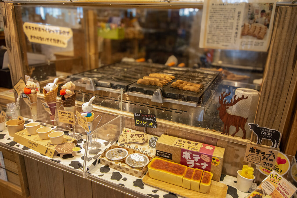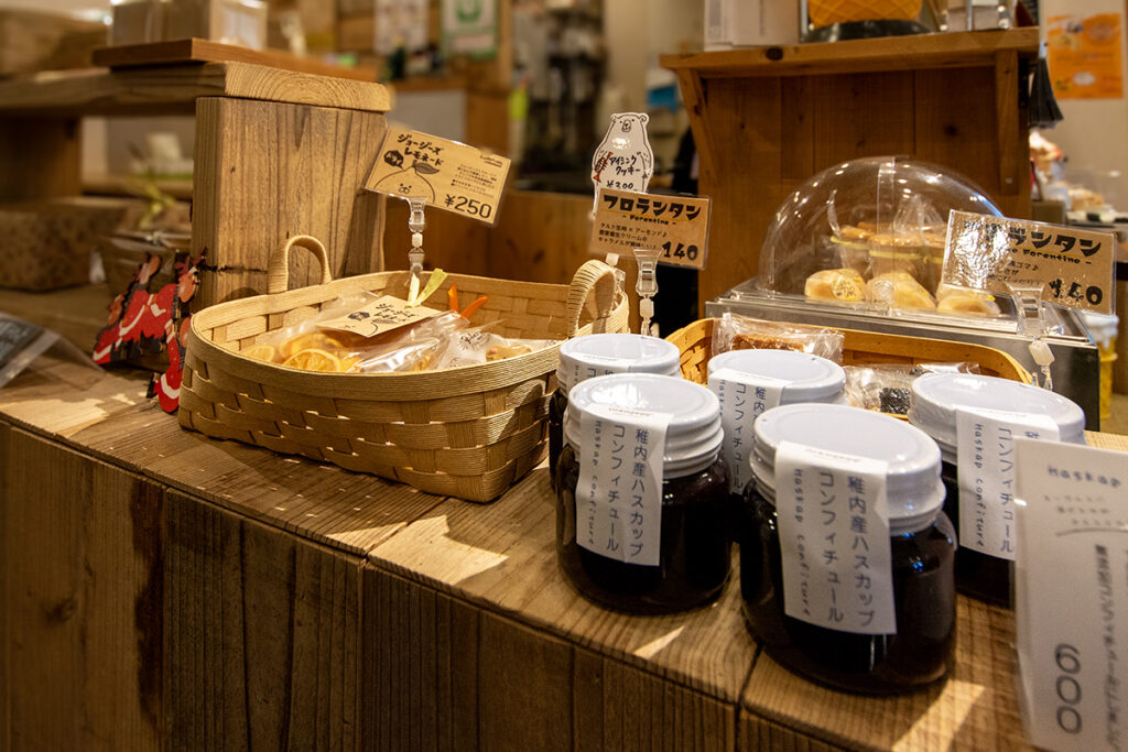 地元の食材や、稚内をイメージするスイーツをたくさん展開するオレンジエッグ。店内のキッチンで焼かれる人気商品は、稚内市内に多く生息する鹿の角を模した「シカパン」。モチっとした生地がクセになります。